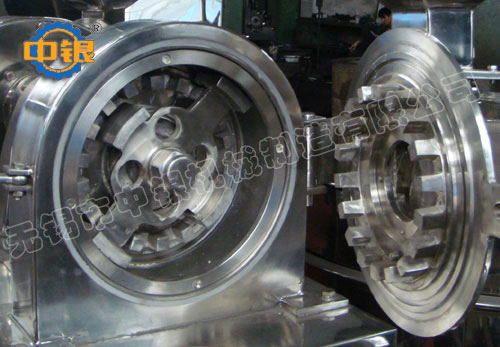 萬能粉碎機利用活動齒盤和固定齒盤見的高速相對運動,使被粉碎物經齒沖擊,摩擦及物料彼此間沖擊等綜合作用獲得粉碎。本機結構簡單、堅固、運轉平穩、粉碎效果良好,被粉碎物可直接由主機磨腔中排出、粒度大小通過更換不同孔徑的網篩獲得,另外該機為全不銹鋼。機殼內壁全部經機加工達到表面平滑,改變了以前機型內壁粗糙、積粉的現象,使藥品、食品、化工等生產更符合國家標準,達到GMP的要求。